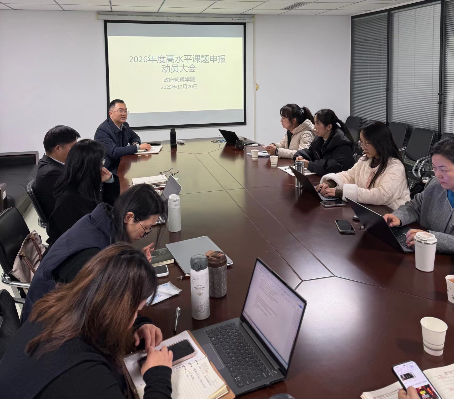 2025年10月20日16:30,政府管理学院召开2026年度高水平课题申报动员大会,旨在提前布局,精准发力,推动学院科研工作再上新台阶。学院科研团队负责人及骨干教师参会,陈伟涛副院长主持。